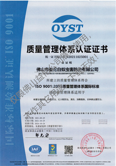 质量管理体系认证证书